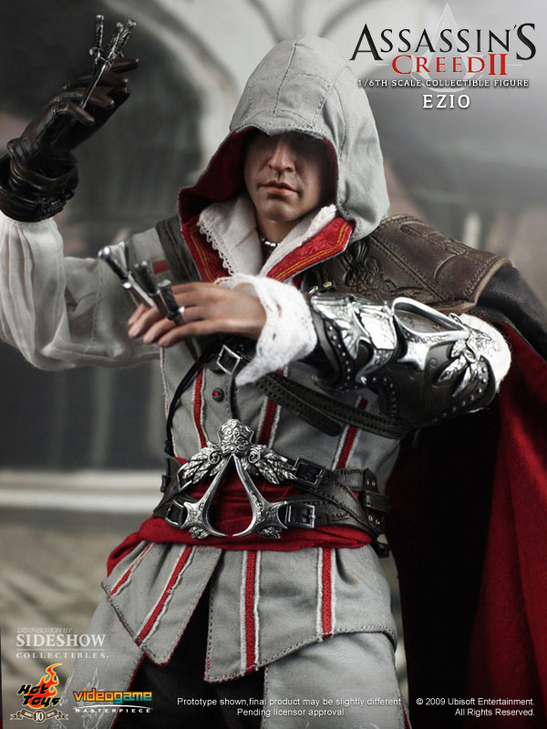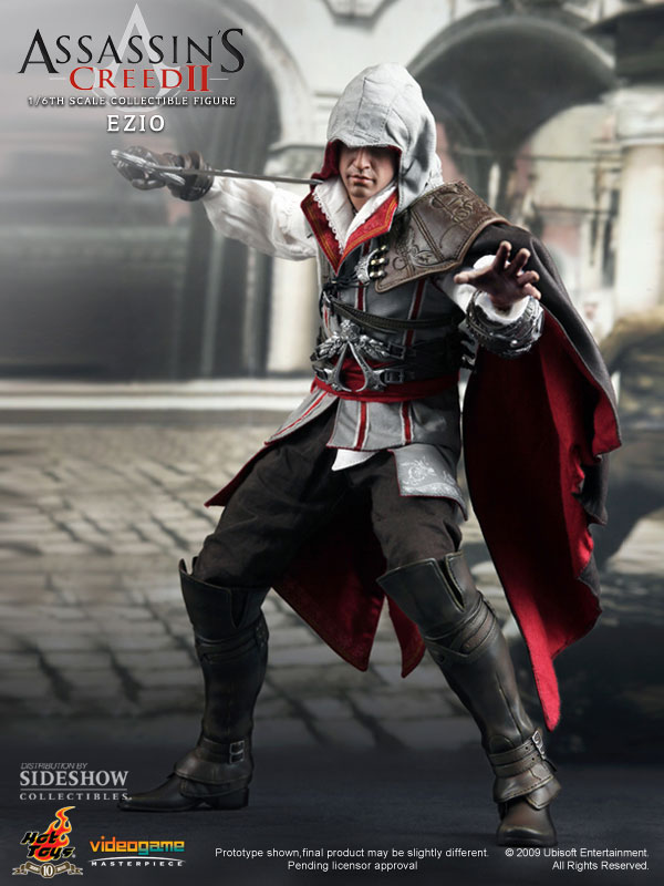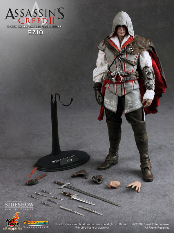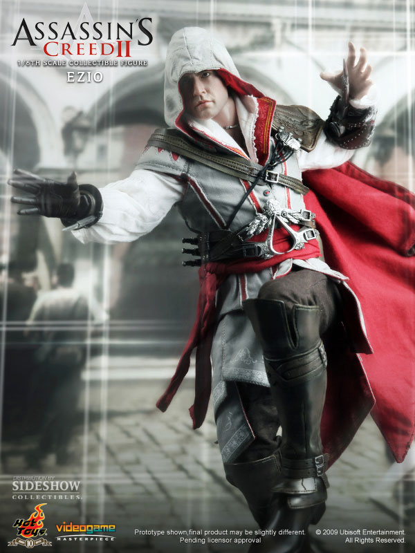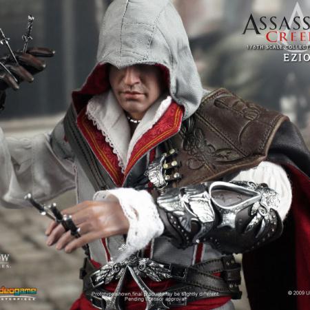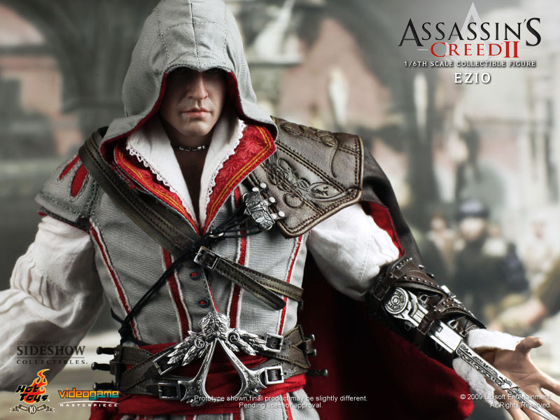 Eine chinesische Firma verkauft eine limitierte Ezio Actionfigur für stolze 250 US-Dollar. Die Details sind sehr schön an zusehen, so gibt es auch verschiedenes Zubehör, sowie auswechselbare Waffen. Die Figur von Hot Toys ist an die 30 cm groß & ca. 1 kg schwer.