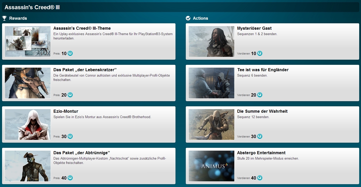 Quelle: Uplay Actions & Rewards zu Assassin's Creed 3 (Xbox360 u. PS3)